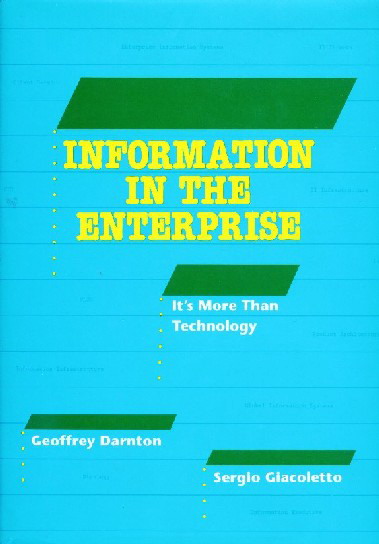 Darnton, G. and Giacoletto, S. (1992) Information in the Enterprise: It's More Than Technology. ISBNs: Burlington, MA, USA: Digital Press 1-5558-091-2, Prentice Hall (US) 0-13-176173-0, and Prentice-Hall (India) 0-87692-789-4.. The original working titles of the book included: Corporate Information Systems and Information Architecture. The most appropriate classification is probably Information Architecture. Several organizations have adopted various key principles from the ideas set out in this book as the basis of their own Information Architecture.
